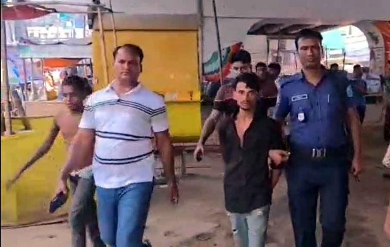 একজনকে আটক করে নিয়ে যাচ্ছিল পুলিশ